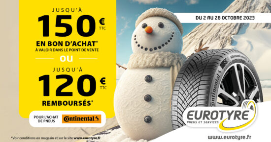 Pneus Continental : Profitez de notre promo jusqu’à 150€ remboursés Du 12 Juin au 29 Juillet 2023, jusqu’à 150€ remboursés* pour l’achat […]